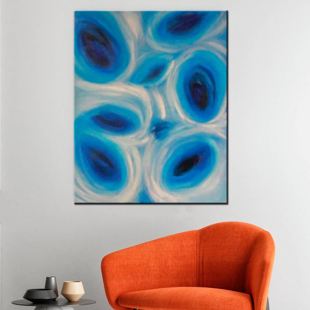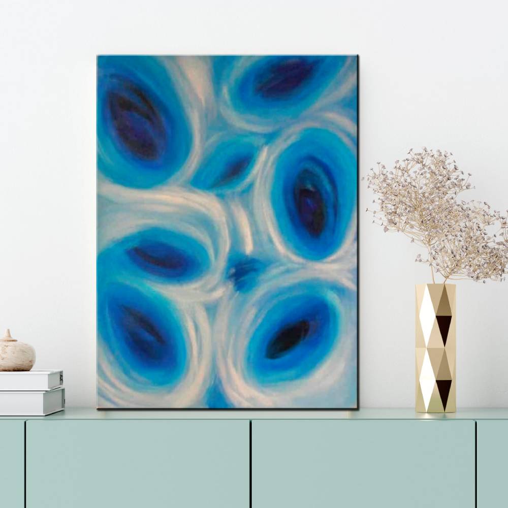Le tableau est de forme verticale, elle est livrée sur châssis et peut être accrochée facilement. Cette œuvre d'art abstrait est idéale pour décorer votre salon, votre chambre ou votre bureau, disponible en 3 dimensions :