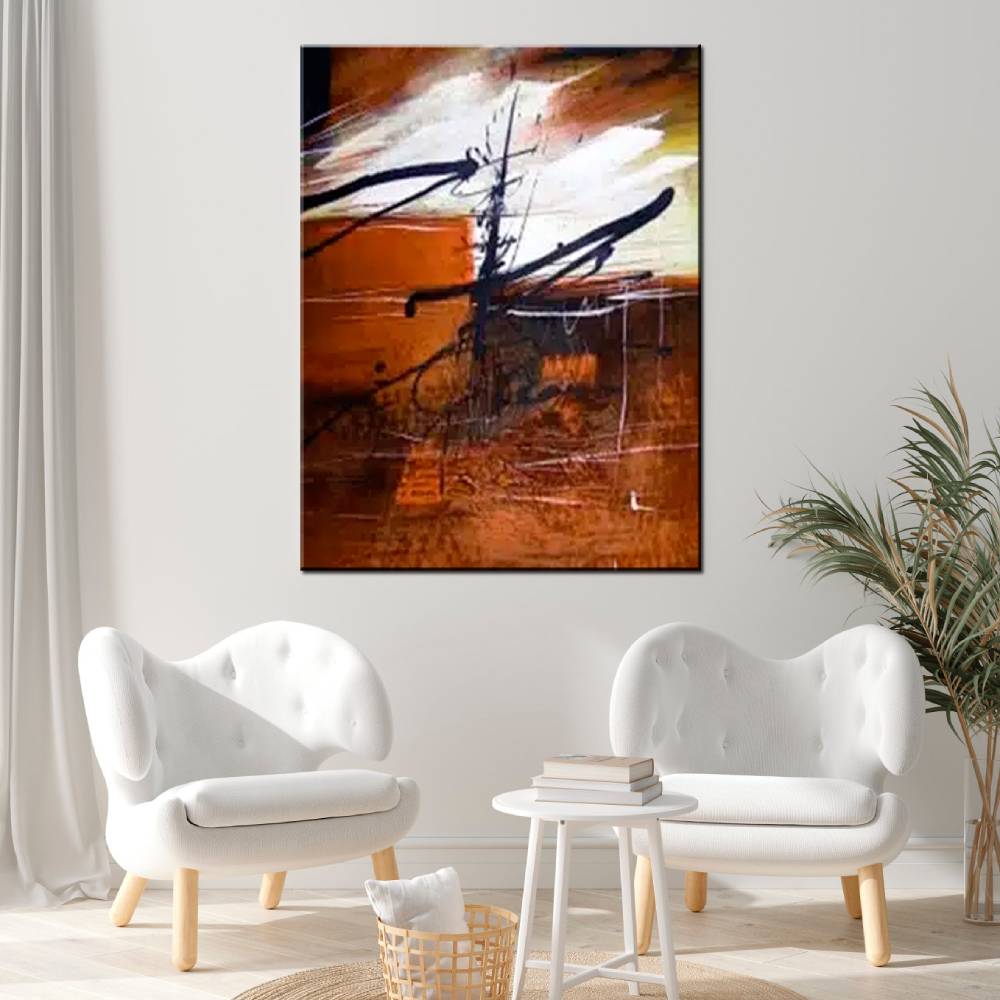 Cette peinture abstraite orange et noire est peut être bien la création qui va redynamiser votre décoration murale