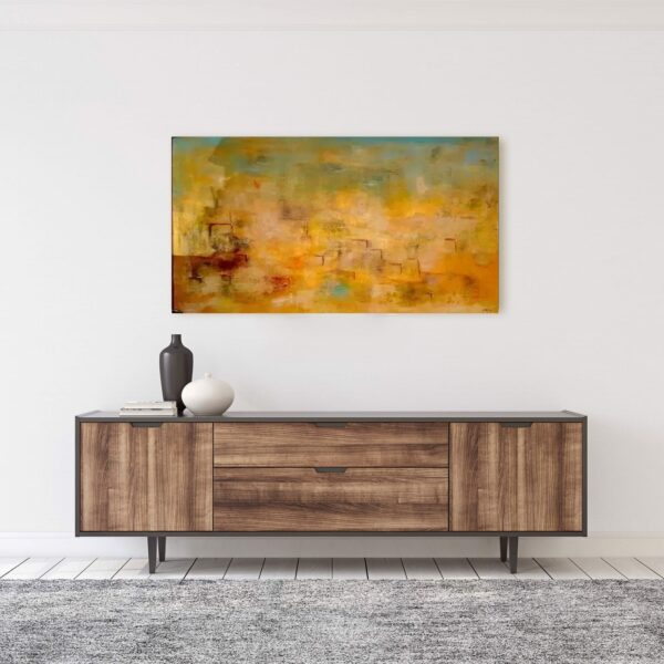 Cette peinture abstraite, en disposition horizontale, est disponible en 3 dimensions :