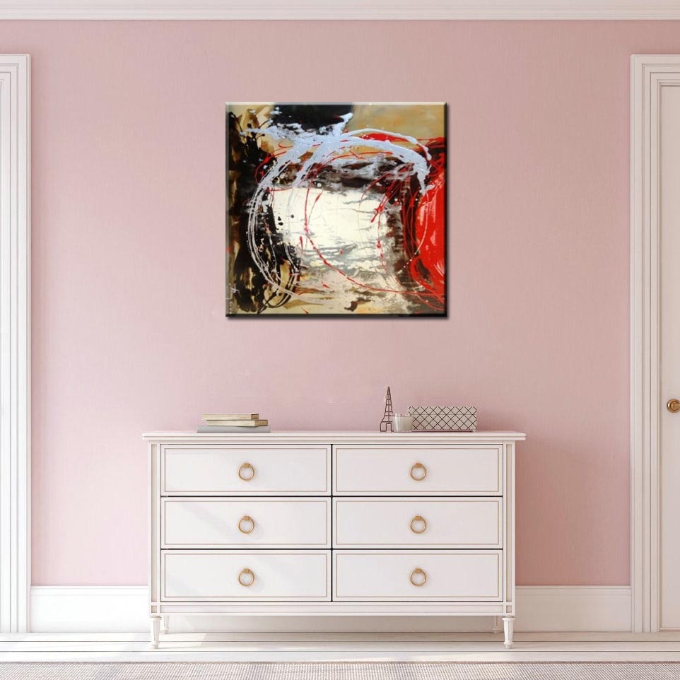 Présentée sous une forme carrée, cette peinture abstraite offre une symétrie et un équilibre esthétique agréables. Les carrés sont souvent associés à la stabilité et à l'ordre, créant des compositions visuelles calmes et cohérentes. Les panneaux carrés s'intègrent parfaitement dans une variété de styles de décoration intérieure, apportant une dimension équilibrée à votre espace.