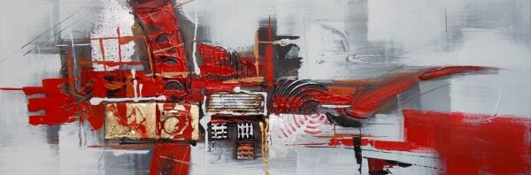 Ce tableau panoramique abstrait gris et rouge est l'élément de décoration murale idéal pour être placé au dessus d'un canapé dans un salon, au dessus du lit dans une chambre, ou encore au dessus d'un meuble de type console