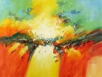 Grâce à ses effets de reliefs et une grande luminosité obtenus avec la technique de la peinture à l'huile, cette toile abstraite va capter le regard et éclairer votre pièce.
