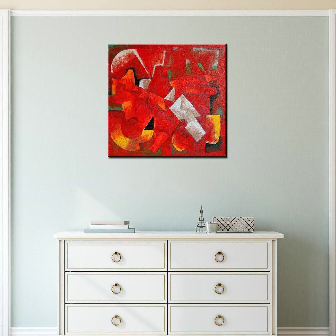 Emotion au rendez vous avec cette toile abstraite orange et rouge carrée