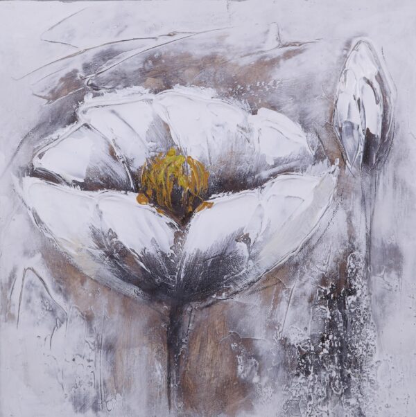 Peinture fleur blanche. Cette toile de fleurs est montée sur châssis. Format carré. Disponible en 3 formats : 60/60 cm, 80/80 cm et 100/100 cm. Autres dimensions sur devis.