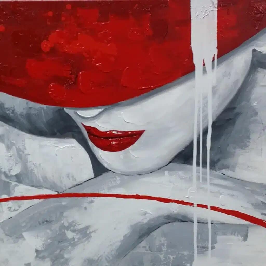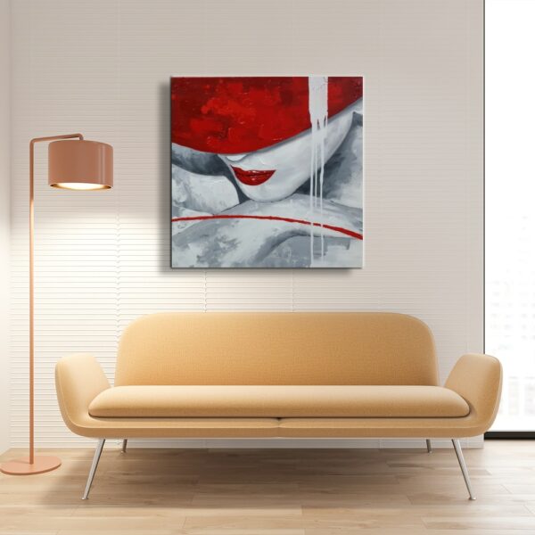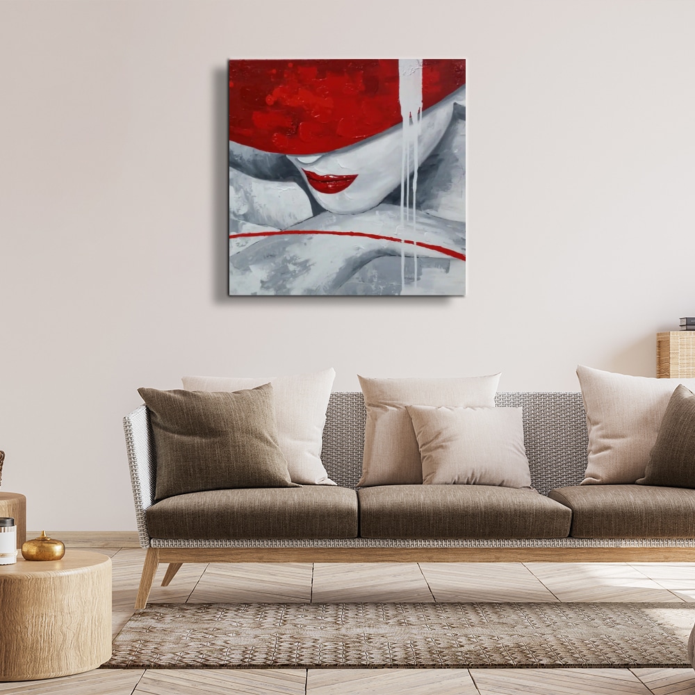 Cette peinture d'une femme au chapeau rouge est un tableau contemporain qui plait aux femmes biensur, mais aussi à toute la famille car ce tableau est naturellement sensuel et élégant