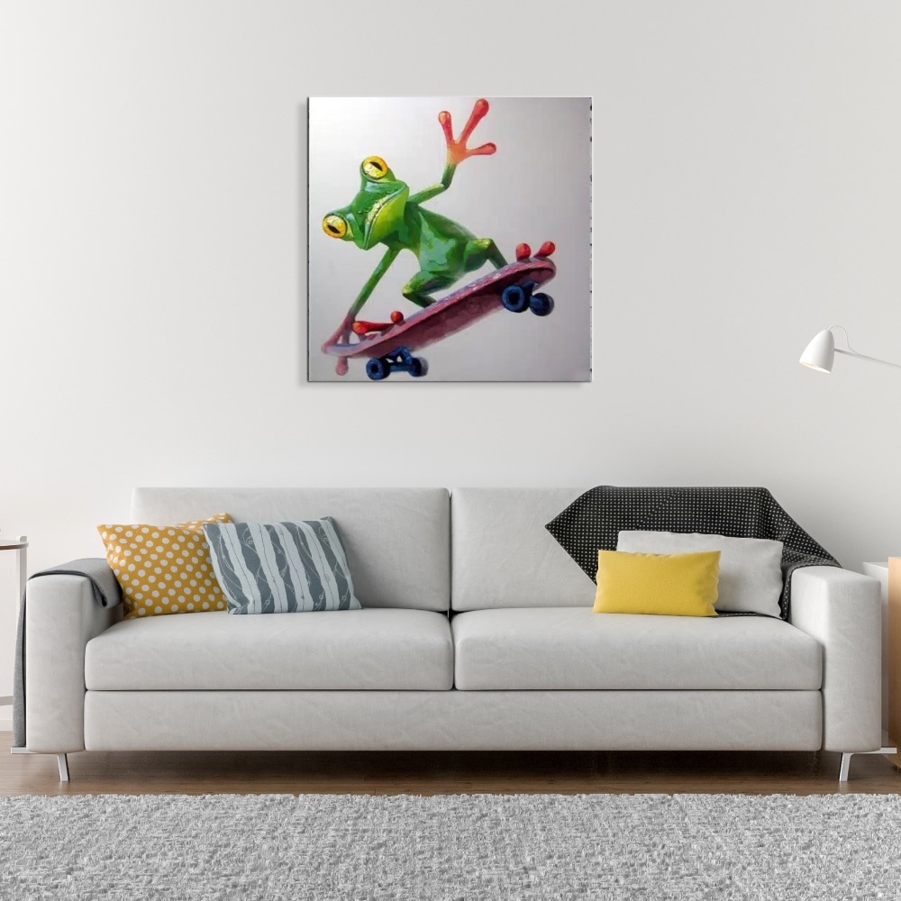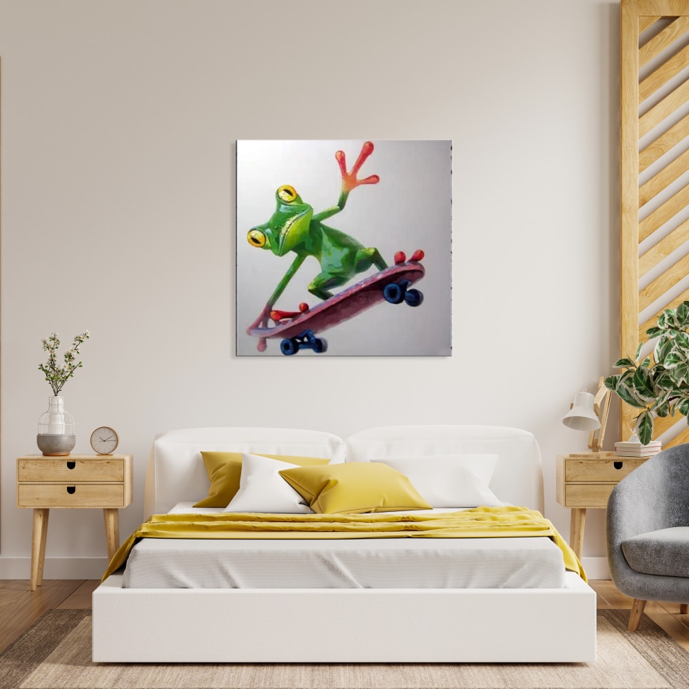 Tableau peinture pop art grenouille verte en skate board