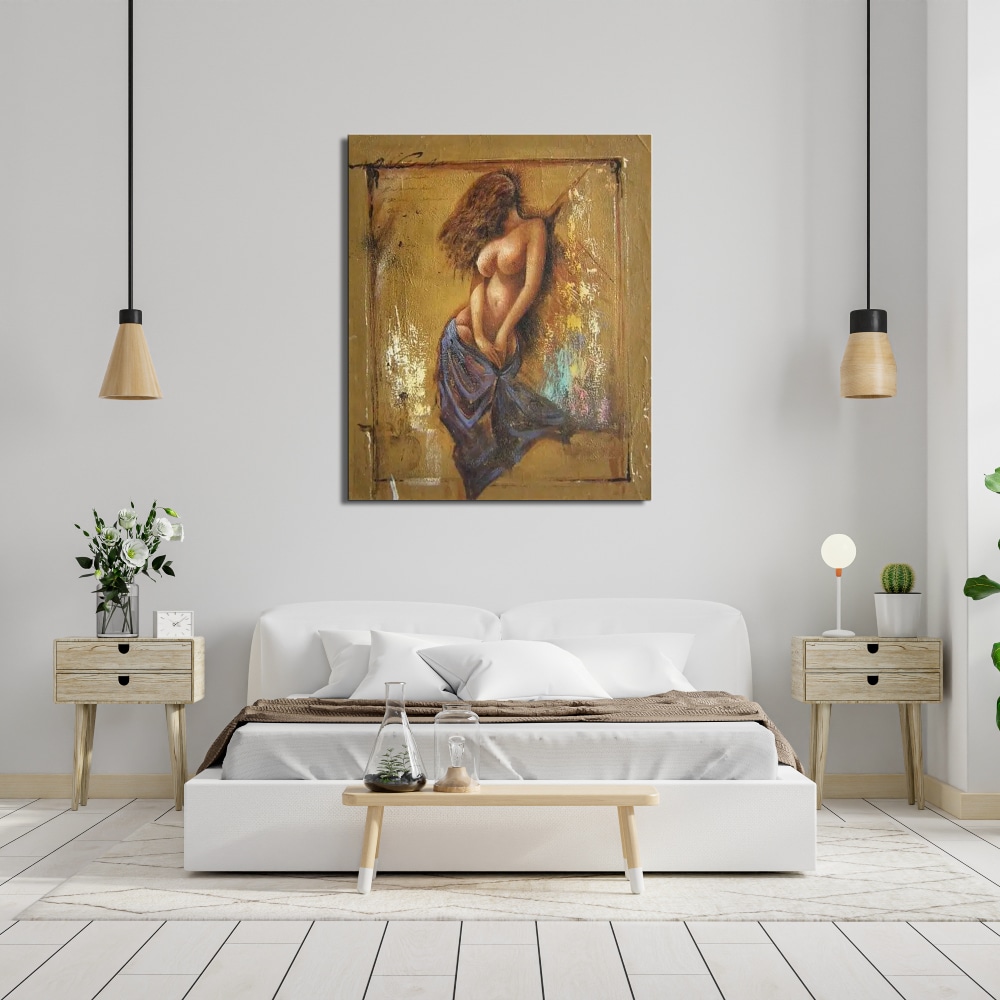 Beaucoup de sensualité sur ce tableau contemporain d'une femme nue.