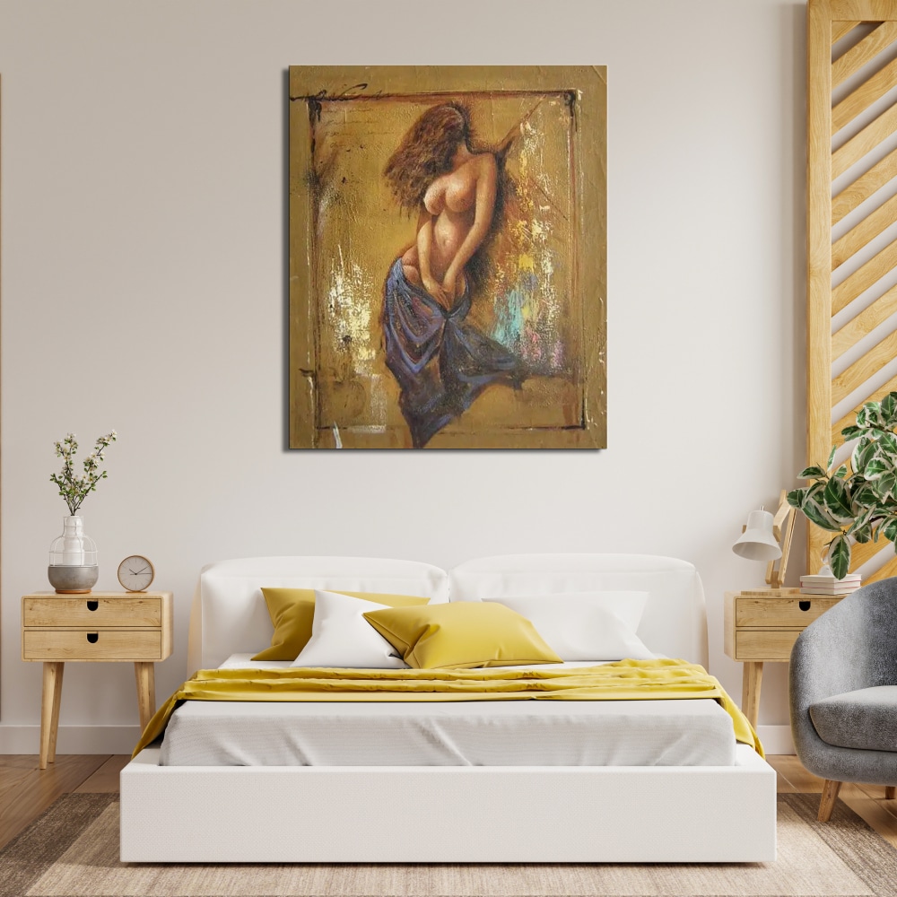 Cette peinture sur toile de nus, en orientation verticale, est disponible en 3 formats :