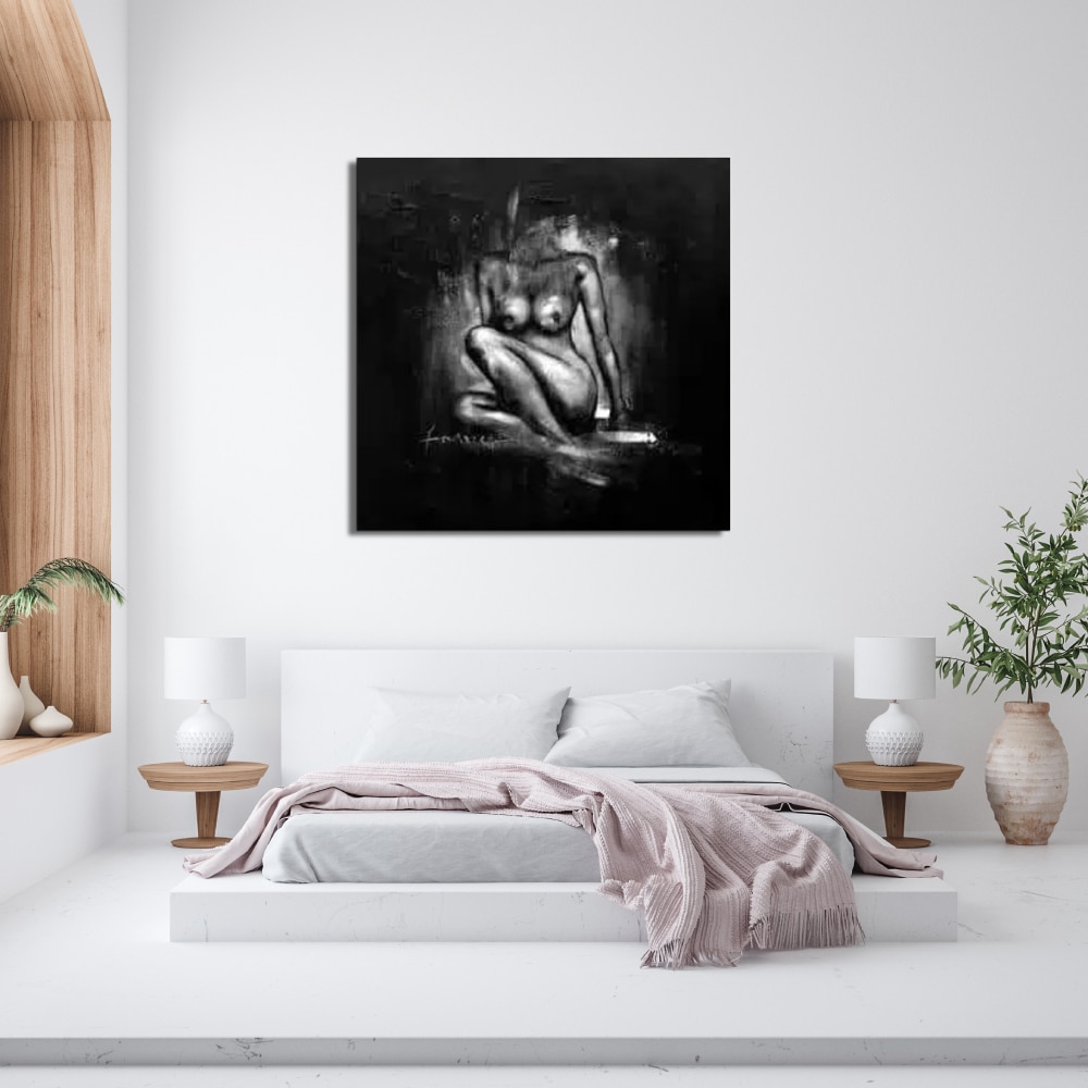 Peinture nu noir et blanc : beaucoup d'élégance et de raffinement avec cette toile noir et blanc sur le thème du nu