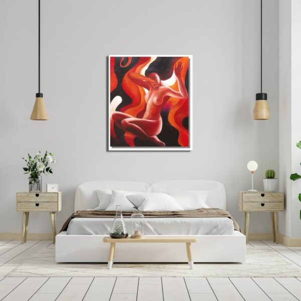 Beaucoup de sensualité sur ce tableau contemporain d'une femme nue.