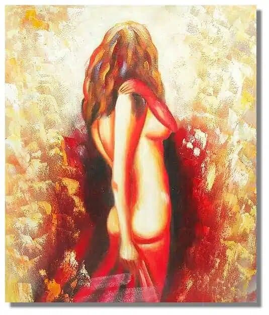 Beaucoup de sensualité sur ce tableau contemporain d'une femme nue.