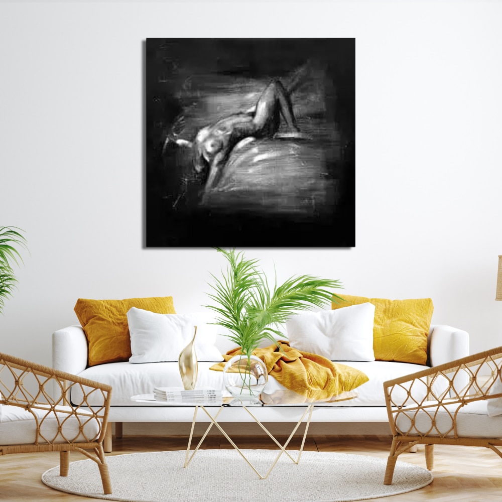 Peinture nu noir et blanc : beaucoup d'élégance et de raffinement avec cette toile noir et blanc sur le thème du nu